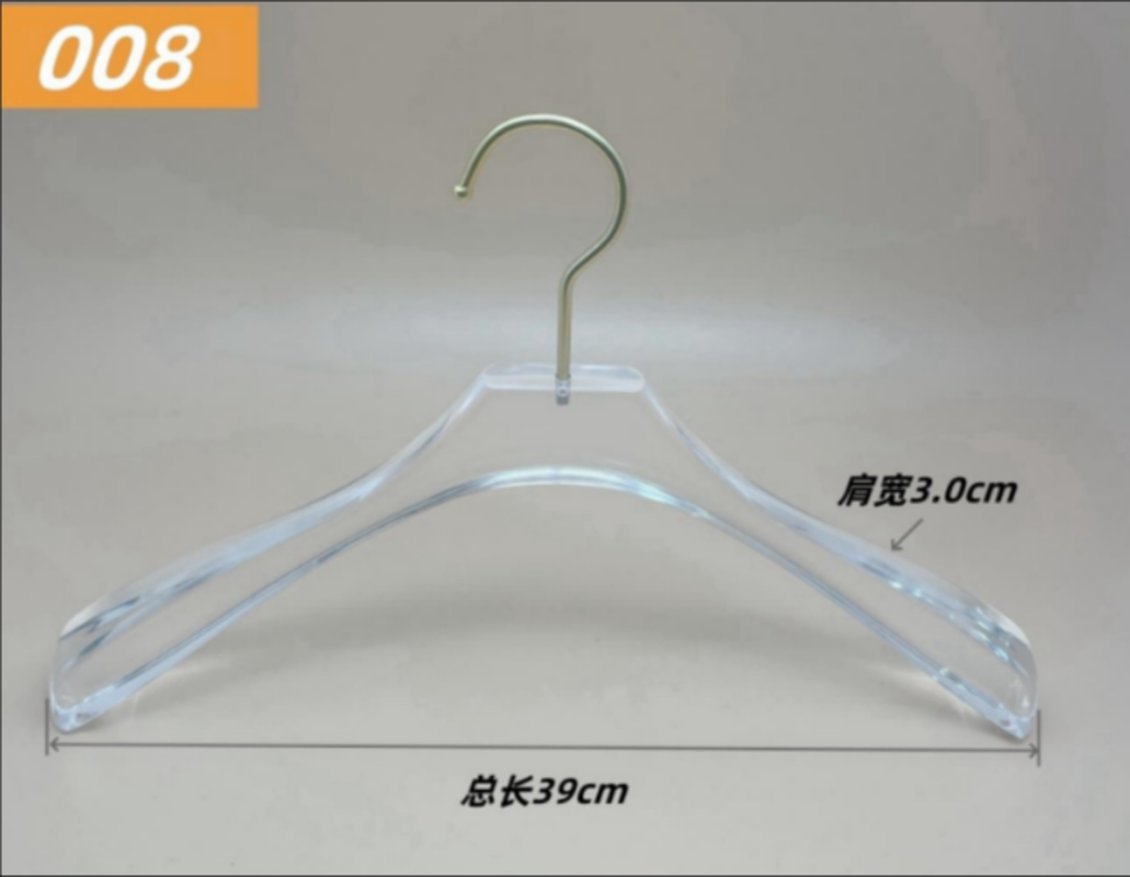 The sturdy and well- crafted clothing hanger made by Acrylic, which brings the high quality and perfect natural looking, well finished polishing create the smooth touch feeling. With elegant design help hanging shirt or upper body clothing, flat hook make daily display or taking easily. Here is the great option to fit for most style of clothing display and keep the store in unit of style and neat. Logo customized available, make your unique displayed hanger.