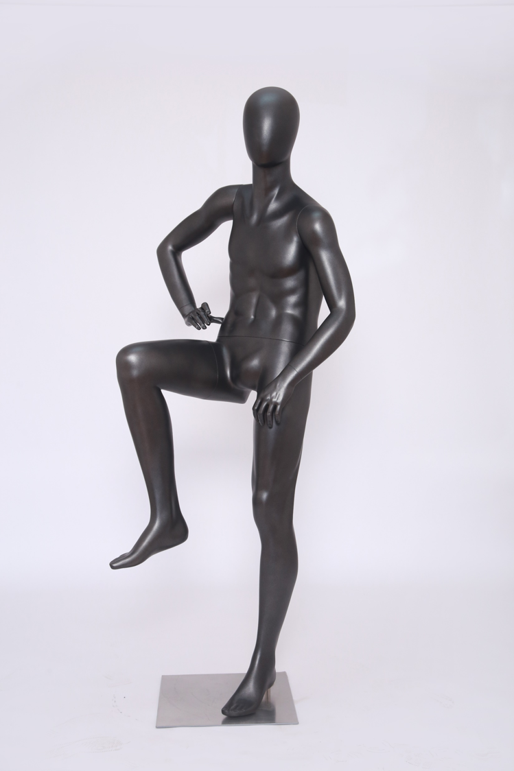 A rugged and versatile male mannequin expertly crafted from fiberglass with a sophisticated matte black finish. Perfect for showcasing outdoor apparel, adventure gear, hiking equipment, and lifestyle accessories with an authentic sense of exploration and functionality. This model features athletic masculine proportions and realistic anatomical details, optimized for displaying backpacks, hiking boots, performance jackets, utility vests, and outdoor accessories. The weighted reinforced base ensures exceptional stability on uneven surfaces while maintaining a natural standing posture. Manufactured from high-quality fiberglass, it combines weather-resistant durability with lightweight portability for easy transportation and repositioning. Designed for outdoor retailers, adventure brands, and lifestyle stores seeking to create immersive visual merchandising displays that emphasize durability, mobility, and the spirit of adventure. Ideal for window displays, trade shows, and photography where dynamic outdoor aesthetics are essential.