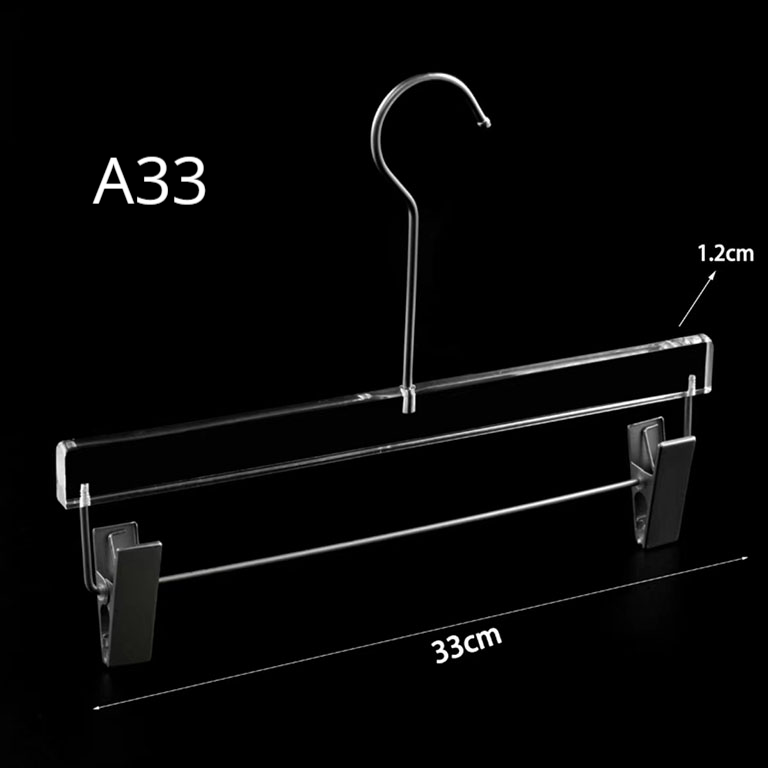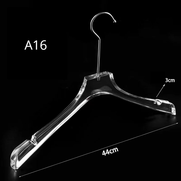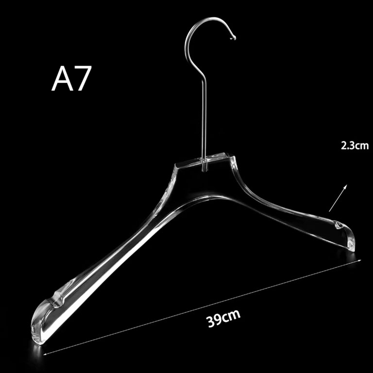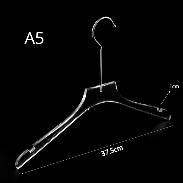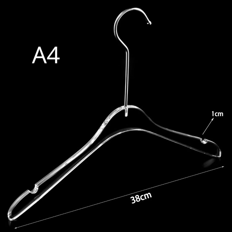 The in-stock hanger have low MOQ, fast delivery time. Sturdy and well-crafted acrylic hanger made by acrylic, which brings the high quality and perfect natural looking, well finished polishing create the smooth touch feeling. With notches on shoulders help hanging camisole or small string clothing, ball end hook make daily display or taking easily. Here is the great option to fit for most style of clothing display and keep the store in unit of style and neat. Logo customized available, make your unique displayed hanger.